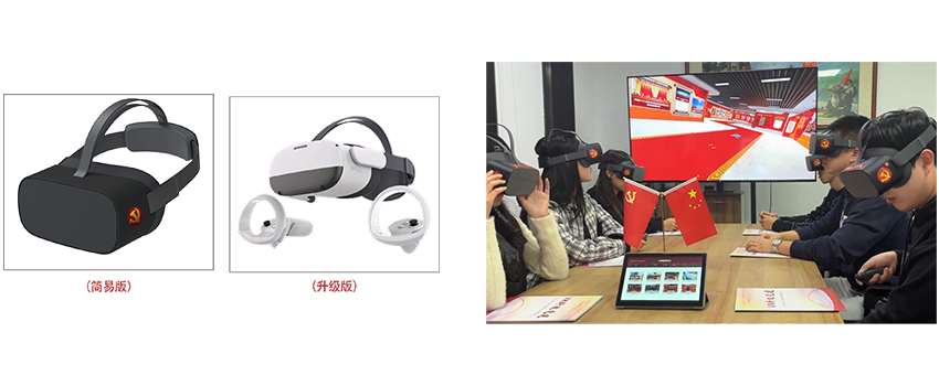 VR黨建一體機(jī):以虛擬現(xiàn)實(shí)為技術(shù)手段,為體驗(yàn)者提供立體的、沉浸式的創(chuàng)新學(xué)習(xí)方式。集學(xué)習(xí)系統(tǒng)配置多臺(tái),4KVR眼鏡投屏器、PAD播控平臺(tái)、充電消毒柜。支持多人統(tǒng)一播控,同時(shí)支持單人交互體驗(yàn),搭載VR黨建平臺(tái)。