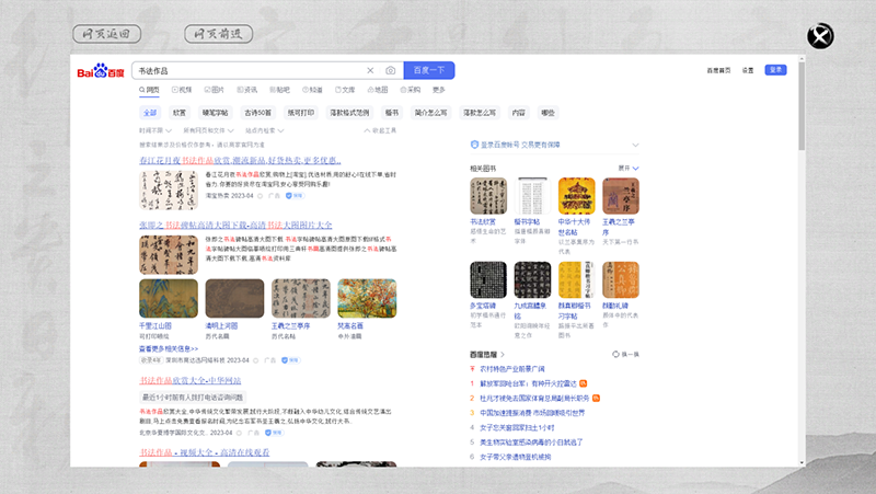 書法知識:點擊書法知識按鈕 進入書法知識的觀看界面